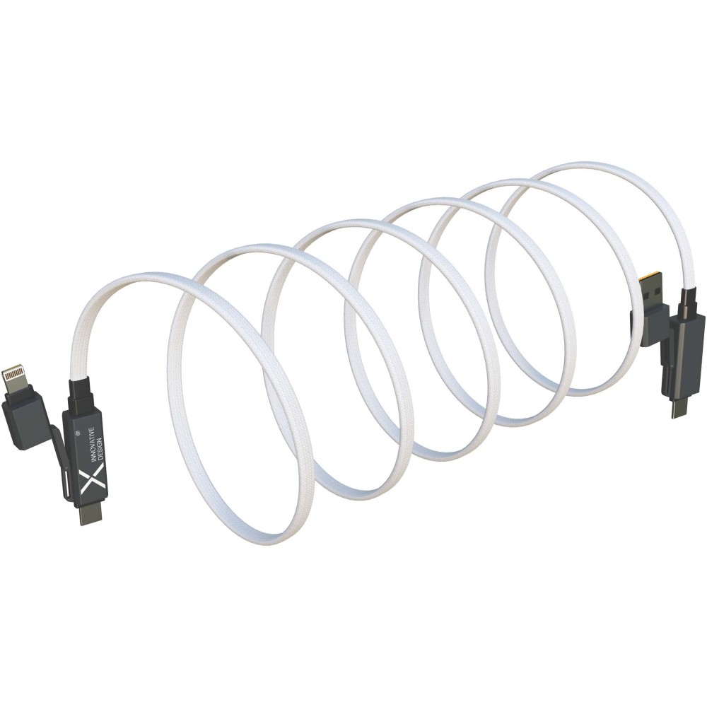 Szupergyors, 60 W-os mágneses töltőkábel, amely alkalmas okostelefonok, táblagépek és laptopok töltésére. Az 1 méter hosszú lapos kábel Type-C és Lightning csatlakozókkal rendelkezik. A vezeték borítása újrahasznosított műanyag palackokból, a végek pedig tartós cinkötvözetből készültek. Az USB-A és USB-C bemenetnek köszönhetően 100%-os kompatibilitást biztosít a legújabb eszközökkel is. Teljes mértékben kompatibilis az Apple CarPlay és az Android Auto rendszerekkel. Újrahasznosítható TPU tasakban, újrahasznosított papír betéttel szállítjuk.
