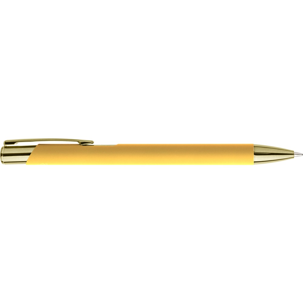 Újrahasznosított alumíniumból készült, gumírozott felületű golyóstoll, a toll színével harmonizáló UV-bevonatú műanyag és fém díszítéssel. Gravírozás után fényes tükörhatás jelenik meg. A tolltesten gravírozott recycled (újrahasznosított) alapanyagra utaló logó található. Megközelítőleg 800 méter íráshosszúságú, kék színű tollbetéttel.