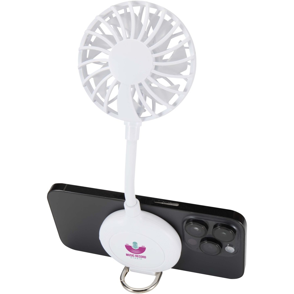 Újrahasznosított műanyagból készült, mágneses okostelefon-ventilátor, amely iPhone 12 és újabb szériákhoz, valamint Samsung Galaxy S23/S24/S25 Ultra készülékekhez használható, mágneses tokkal vagy anélkül is stabilan rögzül. A beépített fémgyűrű kényelmes fogást biztosít, emellett telefontartó állványként is funkcionál, így vízszintes helyzetben is lehetővé teszi a készülék használatát hűsítés közben. A három sebességfokozattal rendelkező, akkumulátoros eszköz kompakt megoldást kínál munkához, utazáshoz vagy kültéri tevékenységekhez, praktikus nyári kiegészítővé téve a terméket. Alacsony fokozaton 1,8 óra, közepes fokozaton 1,4 óra, míg magas fokozaton 1 óra üzemidőt biztosít. Az akkumulátor a mellékelt USB-C kábellel 2 óra alatt tölthető fel teljesen.