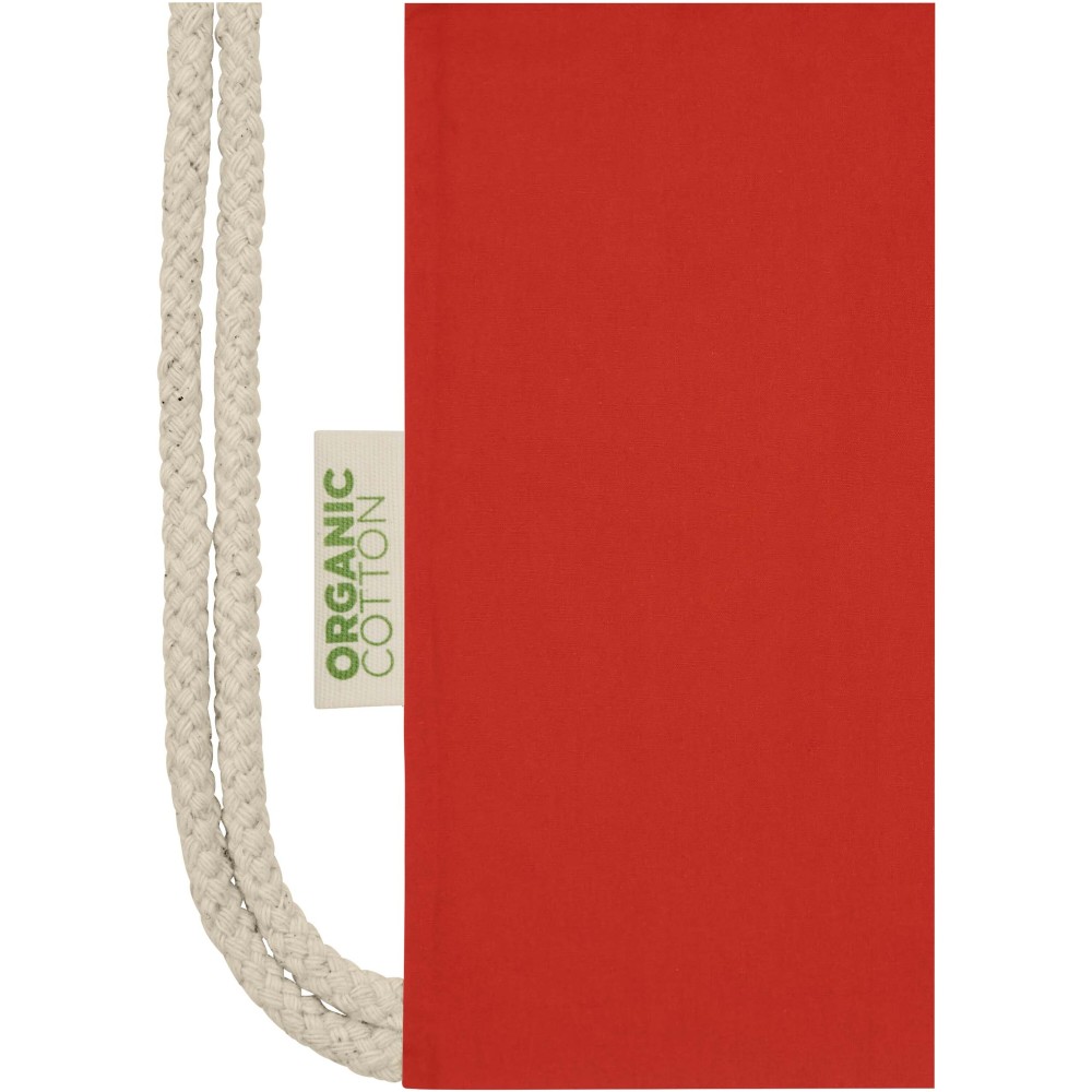 OCS tanúsítvánnyal rendelkező, 100% organikus pamutból készült húzózsinóros hátizsák környezetbarát és praktikus választás. A termék egy tágas főrekesszel és pamut zsinóros záródással rendelkezik, amely biztonságos tárolást garantál értéktárgyak számára. A táska teherbírása legfeljebb 5 kg. Űrtartalma: 5 liter. 140 g/m2 anyag.