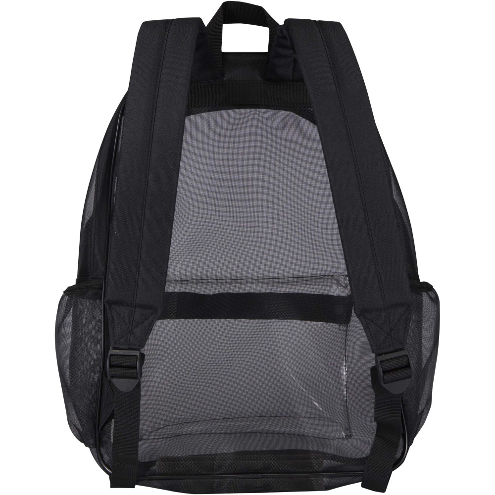 Ez az újrahasznosított poliészter hálóból készült hátizsák fenntartható választást kínál a praktikum és a stílus megőrzése mellett. A termék egy tágas, 18 literes főrekesszel rendelkezik a mindennapi alapfelszerelések számára, egy cipzáras elülső zsebbel a kisebb tárgyaknak, valamint két oldalsó zsebbel, amelyek ideálisak vizespalack vagy esernyő tárolására. A párnázott, állítható vállpántok biztosítják a kényelmes viseletet a nap folyamán. Az átlátszó hálós szerkezet letisztult, modern megjelenést kölcsönöz, miközben láthatóvá teszi a táska tartalmát, így tökéletes megoldást jelent olyan munkahelyeken, rendezvényeken vagy iskolákban, ahol előírás az átlátszó táska használata.