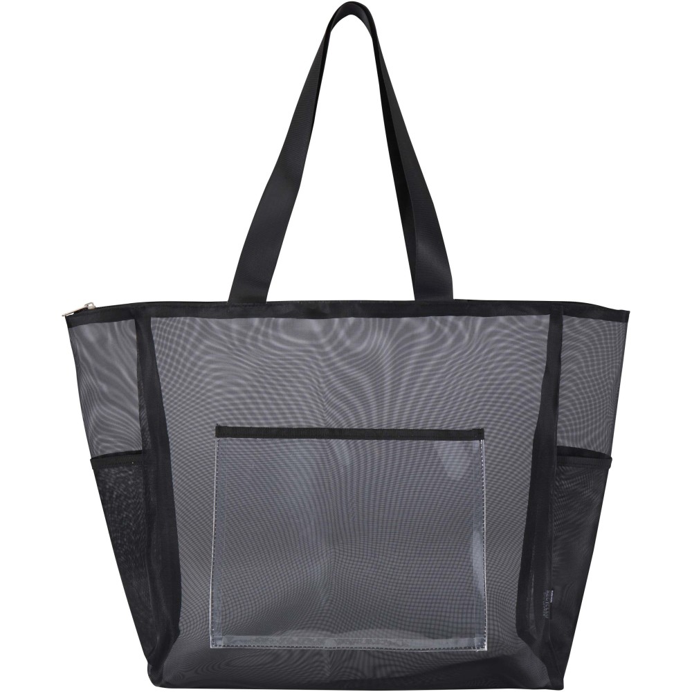 Ez az újrahasznosított poliészter hálóból készült hátizsák fenntartható választást kínál a praktikum és a stílus megőrzése mellett. A termék egy tágas, 18 literes főrekesszel rendelkezik a mindennapi alapfelszerelések számára, egy cipzáras elülső zsebbel a kisebb tárgyaknak, valamint két oldalsó zsebbel, amelyek ideálisak vizespalack vagy esernyő tárolására. A párnázott, állítható vállpántok biztosítják a kényelmes viseletet a nap folyamán. Az átlátszó hálós szerkezet letisztult, modern megjelenést kölcsönöz, miközben láthatóvá teszi a táska tartalmát, így tökéletes megoldást jelent olyan munkahelyeken, rendezvényeken vagy iskolákban, ahol előírás az átlátszó táska használata.