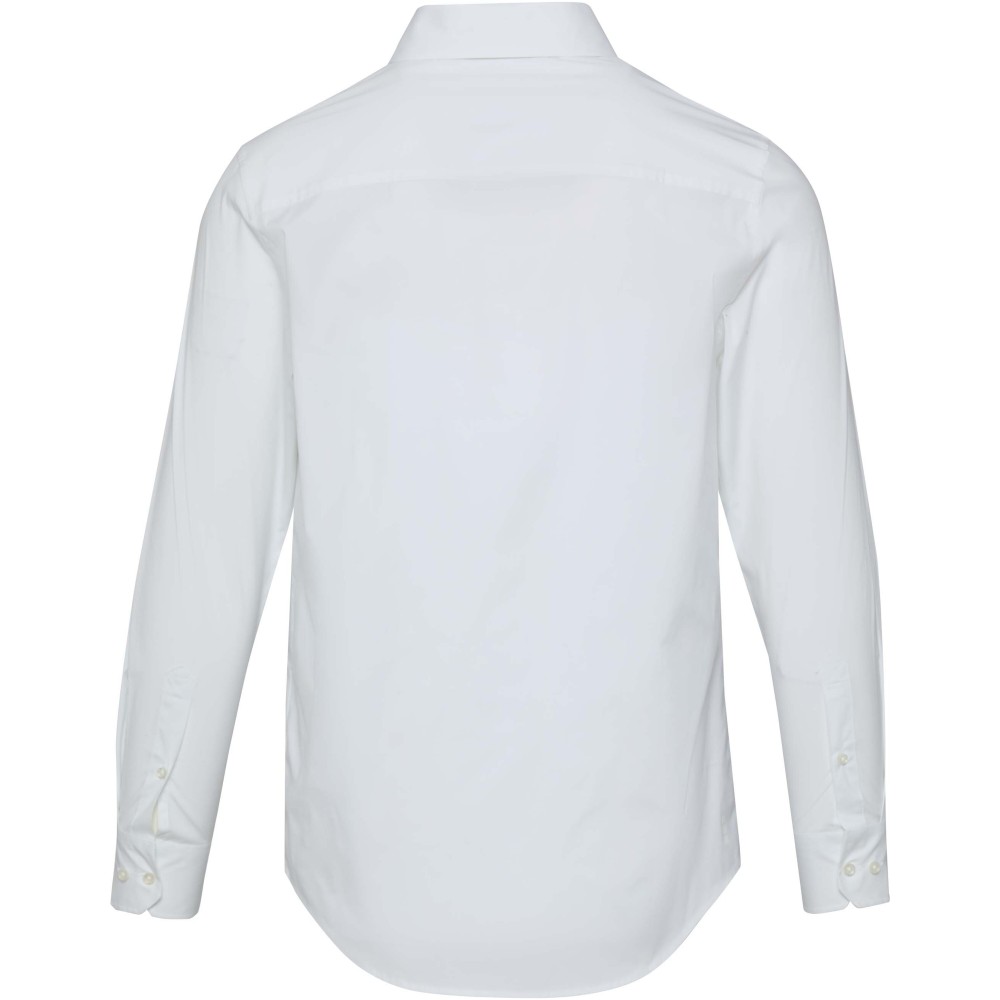 A Carnelian hosszúujjú férfi puplin ing modern kifinomultságot és fokozott kényelmet ötvöz. Kiváló minőségű, BCI-tanúsítvánnyal rendelkező pamutból készült, hozzáadott rugalmassággal, finom 30 denier kétrétegű sodrott szálszerkezettel, amely sima felületet, kivételes tartósságot és luxus érzetet biztosít. A könnyű puplin szövet friss, tiszta megjelenést kölcsönöz, míg a normál fazon mozgásszabadságot és egész napos kényelmet biztosít. Klasszikus, normál gallérral ellátott Carnelian ing sokoldalúan viselhető, mind üzleti, mind alkalmi viselethez. Puplin 97% BCI pamutból és 3% elasztánból, 133 g/m2.
