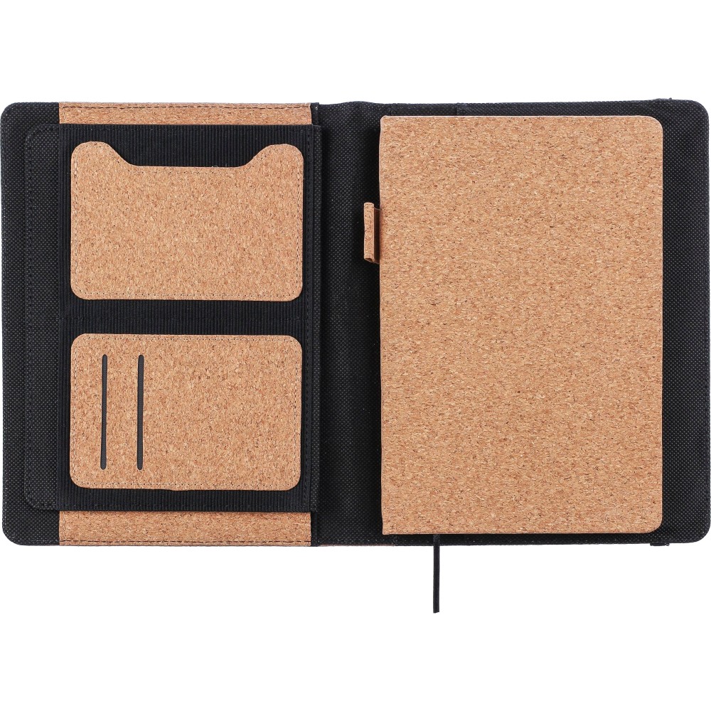 A5-ös parafa mappa belső zsebekkel, rugalmas zárópánttal, tolltartó hurokkal és kivehető A5-ös jegyzetfüzettel, amely 192 vonalas, újrahasznosított papírlapot tartalmaz (70 g/m2). Selyempapír csomagolásban.