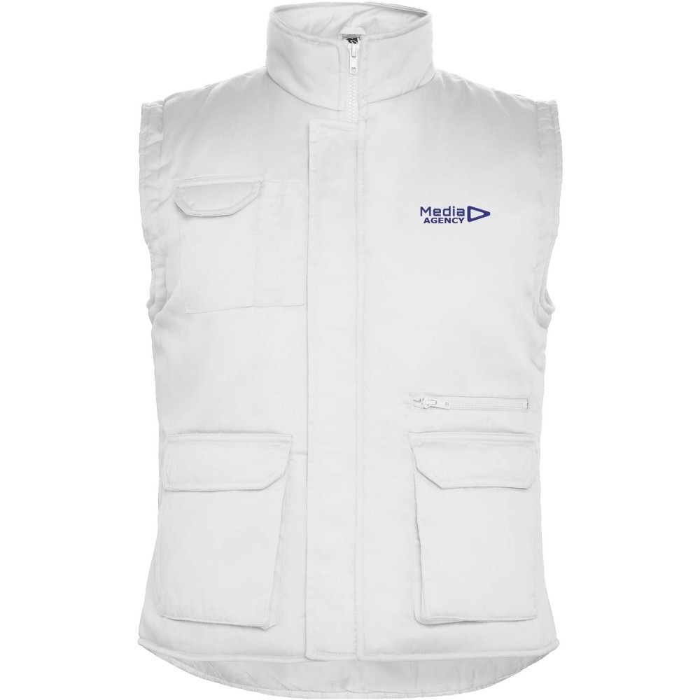 Többfunkciós munkavédelmi mellény magasított nyakkal. A jobb oldalon egy külső mobiltelefontartó zseb, elöl két oldalsó nyílással rendelkező redőzött zseb, valamint két kisméretű tolltartó zseb található. A belső oldalon egy tépőzáras zseb és egy további cipzáras zseb biztosítja a tárolást. A kényelmes viseletről a hosszított hátrész és az állítható derékbőség gondoskodik.