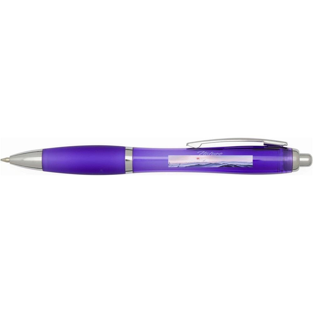 A Nash újrahasznosított műanyagból készült nyomógombos golyóstoll stílusos, ívelt kialakítású, áttetsző színes tolltesttel, ezüst díszítéssel és a tolltest színével megegyező, kényelmes írást biztosító puha fogórésszel rendelkezik. Az RCS tanúsítvánnyal rendelkező újrahasznosított ABS műanyagból készült termék segít csökkenteni a szűz alapanyagok felhasználását, miközben megőrzi tartósságát. A toll hátoldalán található rABS logó jelzi az újrahasznosított anyagösszetételt. Tinta színe: kék. Tollhegy mérete: 1.0 mm. Íráshossz: 1000 méter.