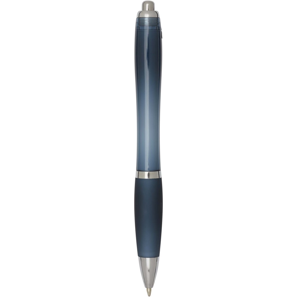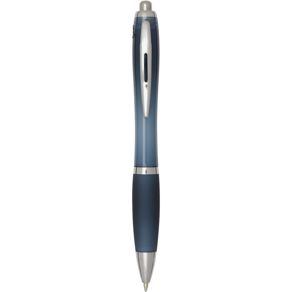 A Nash újrahasznosított műanyagból készült nyomógombos golyóstoll stílusos, ívelt kialakítású, áttetsző színes tolltesttel, ezüst díszítéssel és a tolltest színével megegyező, kényelmes írást biztosító puha fogórésszel rendelkezik. Az RCS tanúsítvánnyal rendelkező újrahasznosított ABS műanyagból készült termék segít csökkenteni a szűz alapanyagok felhasználását, miközben megőrzi tartósságát. A toll hátoldalán található rABS logó jelzi az újrahasznosított anyagösszetételt. Tinta színe: kék. Tollhegy mérete: 1.0 mm. Íráshossz: 1000 méter.