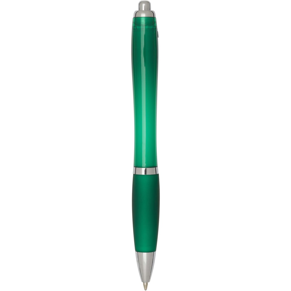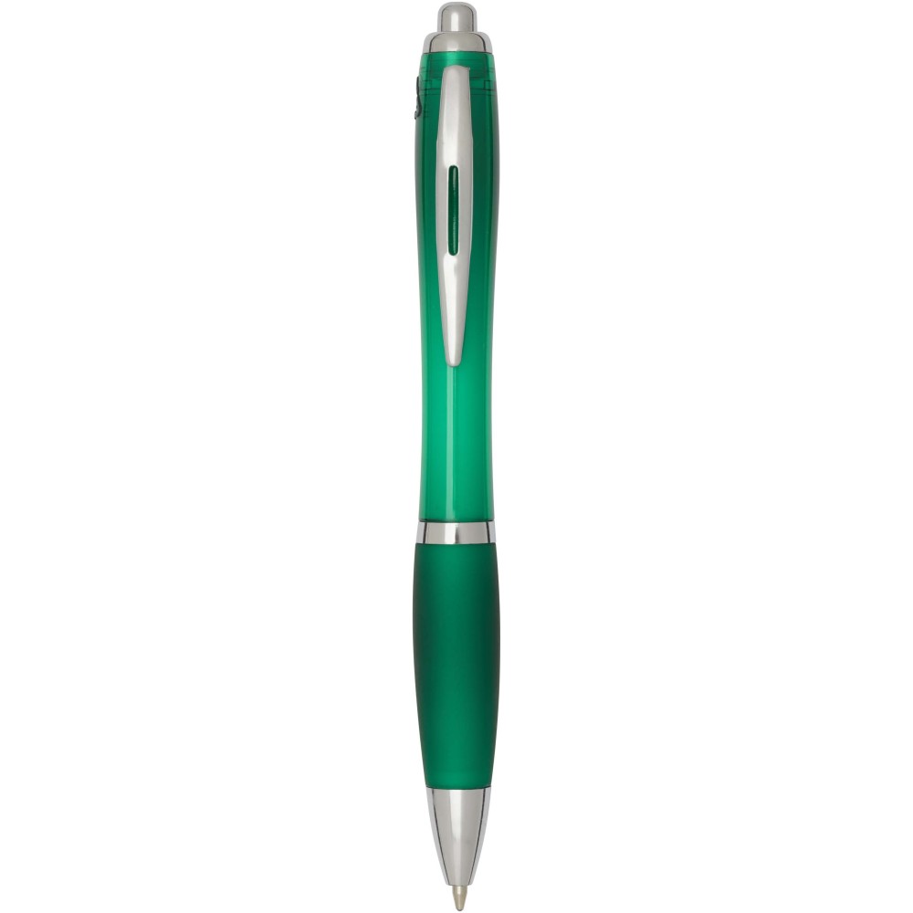 A Nash újrahasznosított műanyagból készült nyomógombos golyóstoll stílusos, ívelt kialakítású, áttetsző színes tolltesttel, ezüst díszítéssel és a tolltest színével megegyező, kényelmes írást biztosító puha fogórésszel rendelkezik. Az RCS tanúsítvánnyal rendelkező újrahasznosított ABS műanyagból készült termék segít csökkenteni a szűz alapanyagok felhasználását, miközben megőrzi tartósságát. A toll hátoldalán található rABS logó jelzi az újrahasznosított anyagösszetételt. Tinta színe: kék. Tollhegy mérete: 1.0 mm. Íráshossz: 1000 méter.