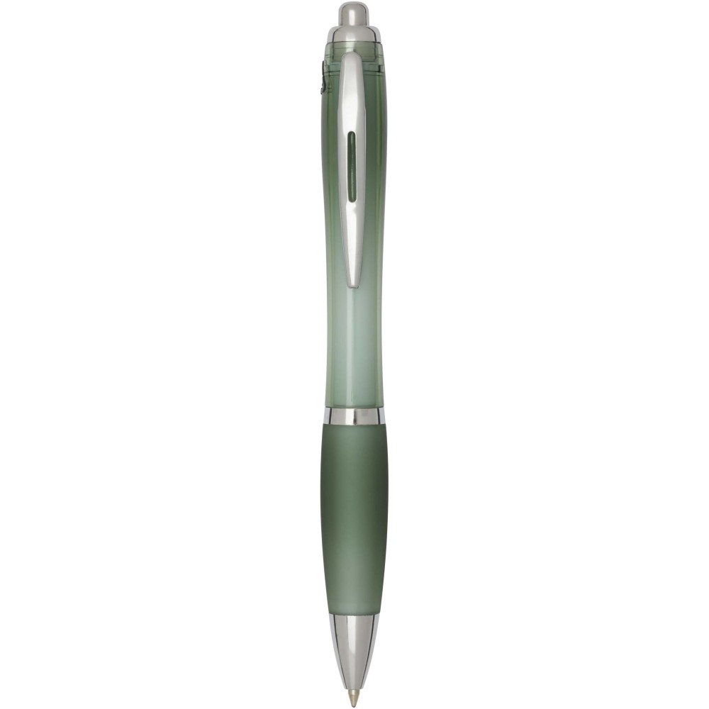 A Nash újrahasznosított műanyagból készült nyomógombos golyóstoll stílusos, ívelt kialakítású, áttetsző színes tolltesttel, ezüst díszítéssel és a tolltest színével megegyező, kényelmes írást biztosító puha fogórésszel rendelkezik. Az RCS tanúsítvánnyal rendelkező újrahasznosított ABS műanyagból készült termék segít csökkenteni a szűz alapanyagok felhasználását, miközben megőrzi tartósságát. A toll hátoldalán található rABS logó jelzi az újrahasznosított anyagösszetételt. Tinta színe: kék. Tollhegy mérete: 1.0 mm. Íráshossz: 1000 méter.