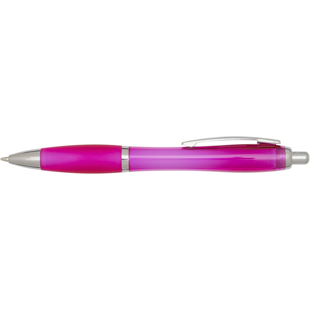 A Nash újrahasznosított műanyagból készült nyomógombos golyóstoll stílusos, ívelt kialakítású, áttetsző színes tolltesttel, ezüst díszítéssel és a tolltest színével megegyező, kényelmes írást biztosító puha fogórésszel rendelkezik. Az RCS tanúsítvánnyal rendelkező újrahasznosított ABS műanyagból készült termék segít csökkenteni a szűz alapanyagok felhasználását, miközben megőrzi tartósságát. A toll hátoldalán található rABS logó jelzi az újrahasznosított anyagösszetételt. Tinta színe: fekete. Tollhegy mérete: 1.0 mm. Íráshossz: 1000 méter.