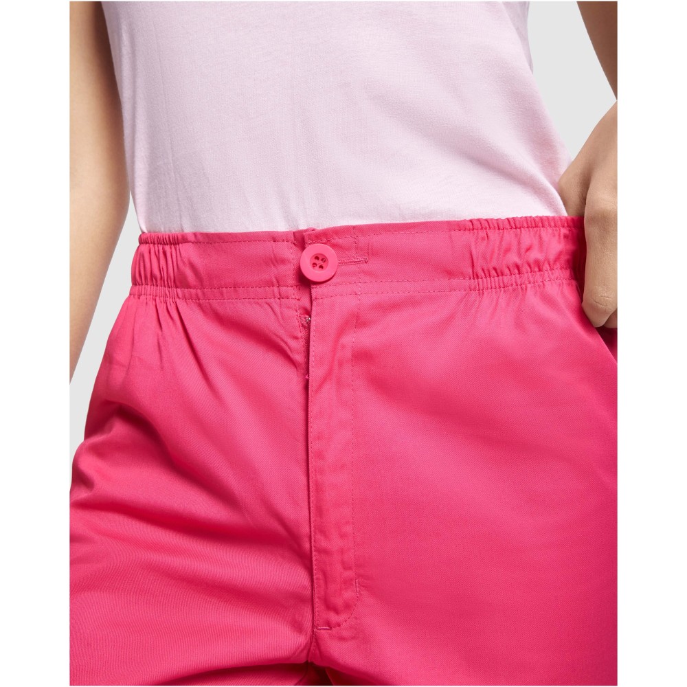 Unisex munkavédelmi nadrág, amely egyenes szabású kialakításával és rugalmas derékrészével kényelmes viseletet biztosít. A nadrág cipzárral és gombbal záródik, valamint praktikus hátsó zsebbel rendelkezik.