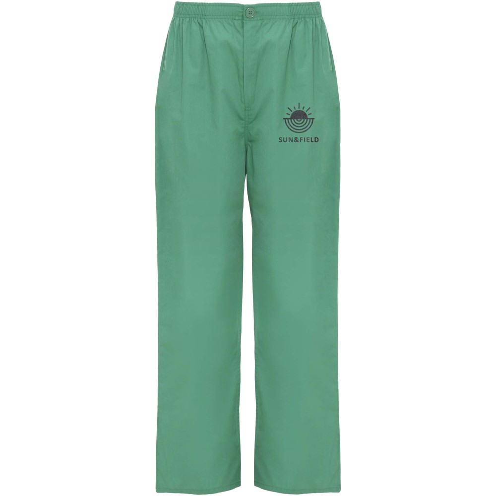 Unisex munkavédelmi nadrág, amely egyenes szabású kialakításával és rugalmas derékrészével kényelmes viseletet biztosít. A nadrág cipzárral és gombbal záródik, valamint praktikus hátsó zsebbel rendelkezik.
