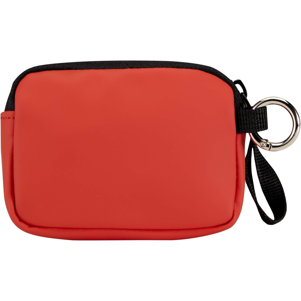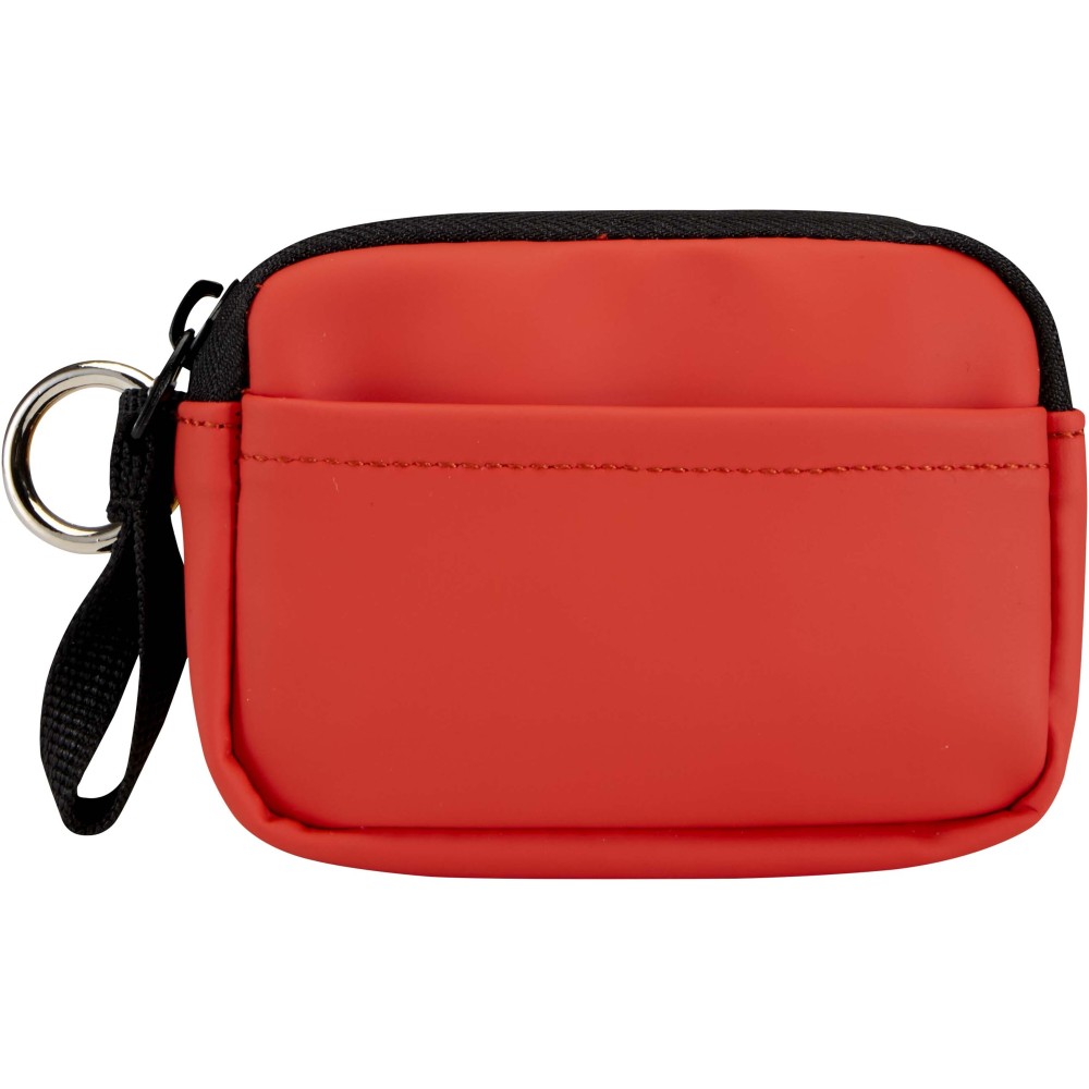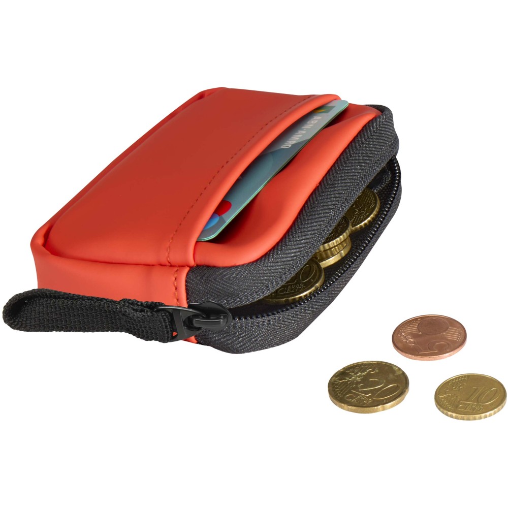 Minőségi újrahasznosított PU bőrből készült, felcsatolható pénztárca, amely ötvözi a letisztult stílust a mindennapi praktikummal. A biztonságos cipzáras záródással és belső kártyatartó rekesszel ellátott kiegészítő gondoskodik az értéktárgyak rendszerezett és könnyen hozzáférhető tárolásáról. Egyszerűen rögzíthető táskához, övbújtatóhoz vagy kulcscsomóhoz.