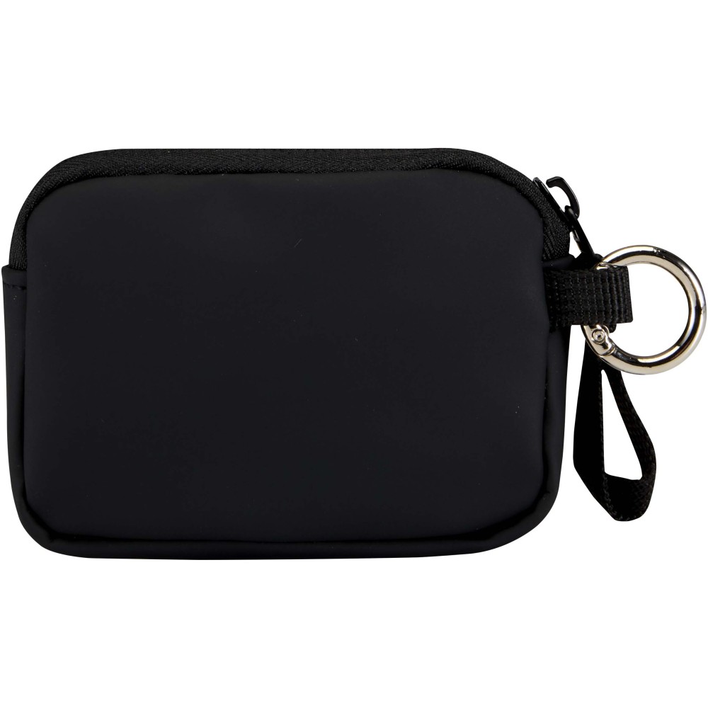 Minőségi újrahasznosított PU bőrből készült, felcsatolható pénztárca, amely ötvözi a letisztult stílust a mindennapi praktikummal. A biztonságos cipzáras záródással és belső kártyatartó rekesszel ellátott kiegészítő gondoskodik az értéktárgyak rendszerezett és könnyen hozzáférhető tárolásáról. Egyszerűen rögzíthető táskához, övbújtatóhoz vagy kulcscsomóhoz.
