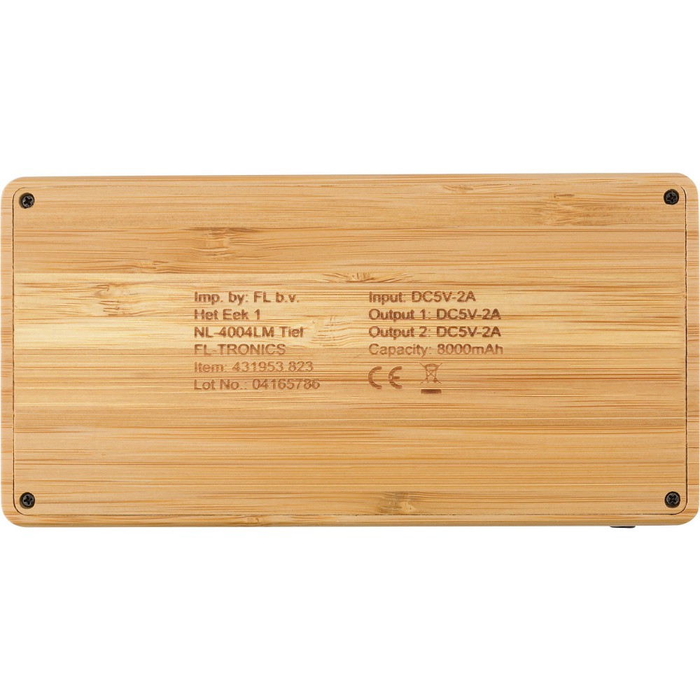 Bambusz powerbank, 8000 mAh, natúr