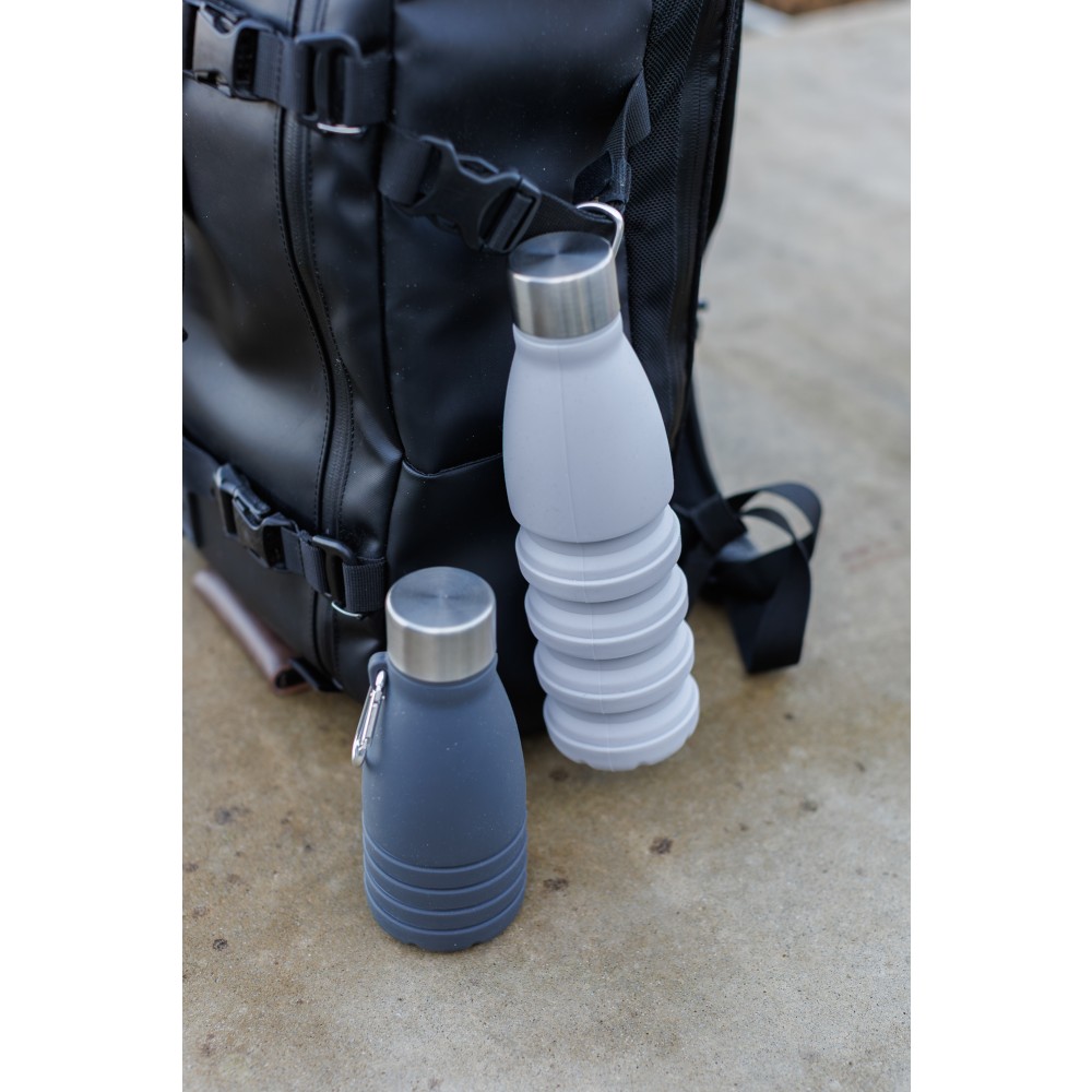 Összehajtható palack szilikonból, 550 ml, szürke