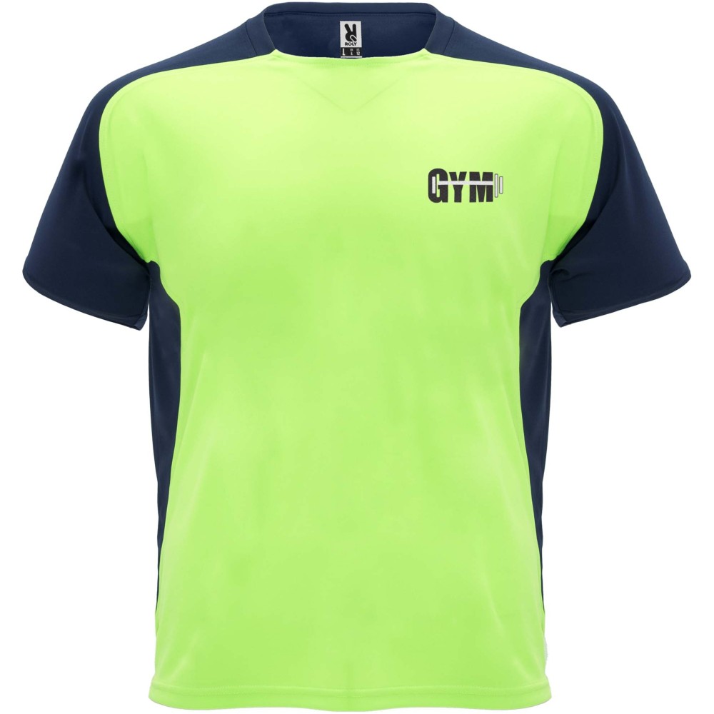 Roly Bugatti rövid ujjú uniszex sportpóló, fluor green, navy blue
