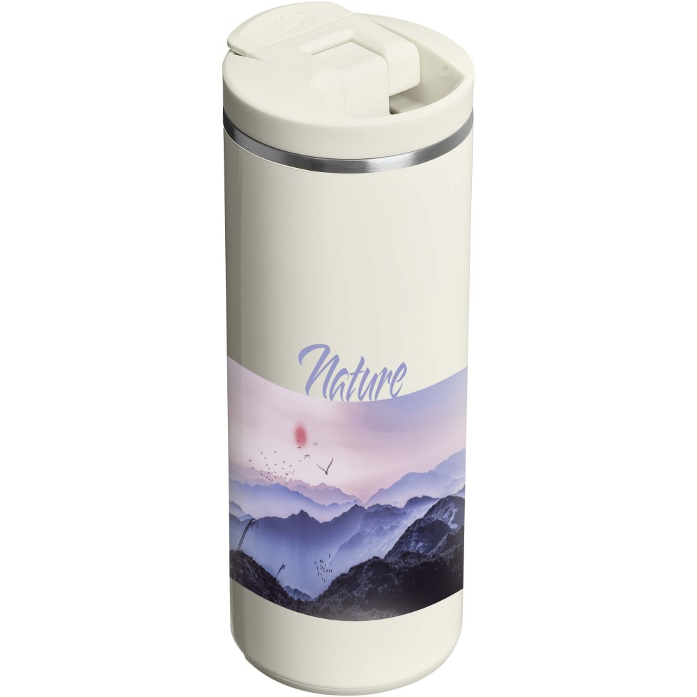 A 350 ml-es duplafalú, vákuumszigetelt pohár újrahasznosított rozsdamentes acélból készült, amely a prémium gyártási technológiának köszönhetően 33%-kal könnyebb a hagyományos rozsdamentes acélnál. A pehelykönnyű, préselt acél szigetelés 4 órán át melegen, 6 órán át pedig hidegen tartja az italokat. A pohár teljesen szivárgásmentes, a tető nyitófülén és a talpán található azonos színű szilikon bevonat pedig halkabb nyitást, zárást és lehelyezést tesz lehetővé. Mosogatógépben tisztítható, és a legtöbb autós pohártartóval kompatibilis.