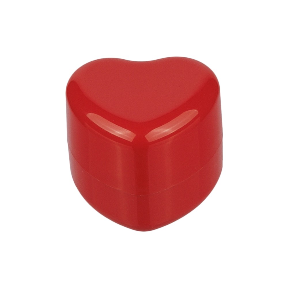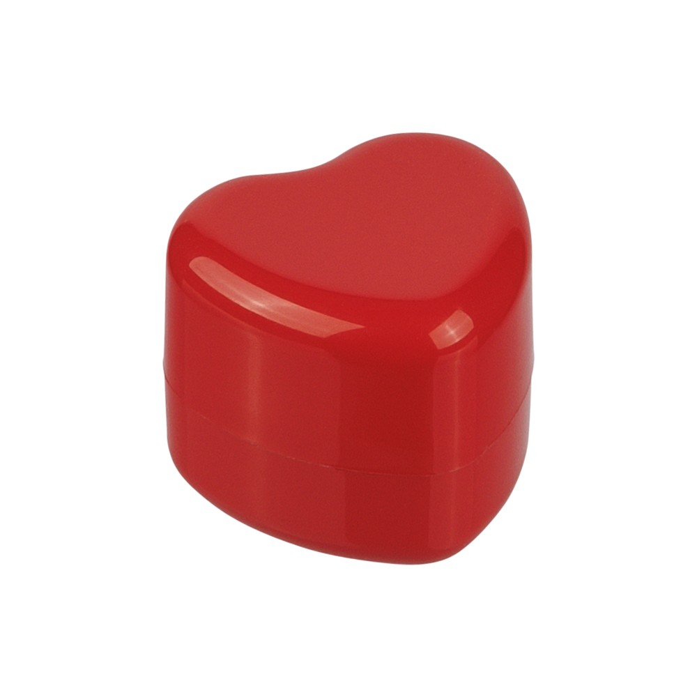 PP anyagból készült szív alakú tégely, benne 5,5 g vanília illatú ajakbalzsammal.