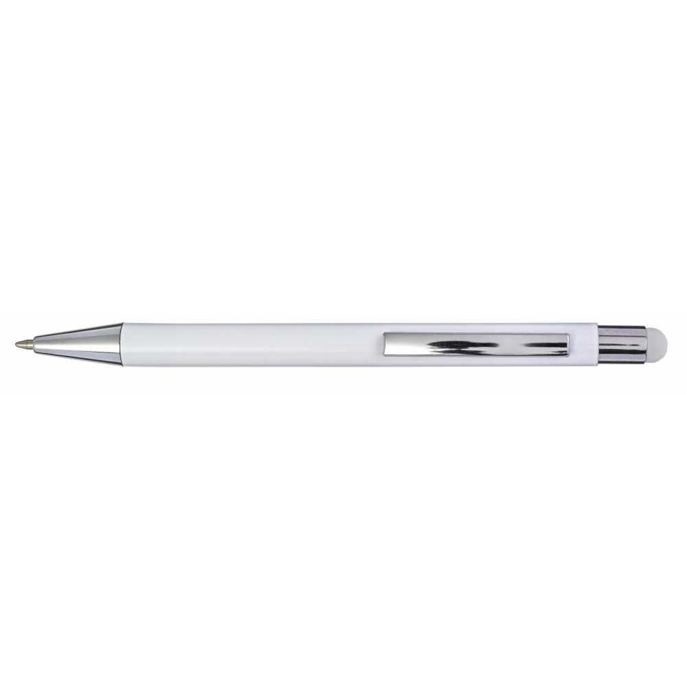 Érintős golyóstoll kék tollbetéttel, fehér/ezüst