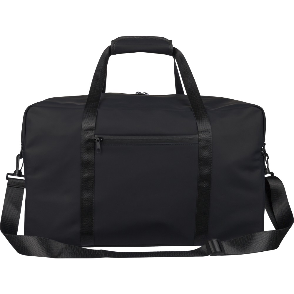 Újrahasznosított PU anyagból készült sporttáska 35 literes űrtartalommal, 210D újrahasznosított poliészter béléssel. 108 cm hosszúságú és 2,5 cm szélességű fogantyúval rendelkezik tépőzáras rögzítéssel, valamint 130 cm hosszúságú és 3,9 cm szélességű állítható vállpánttal. Elülső cipzáras zsebbel és nagy fő rekesszel készül. A belső címkén újrahasznosított alapanyagra utaló logó található.
