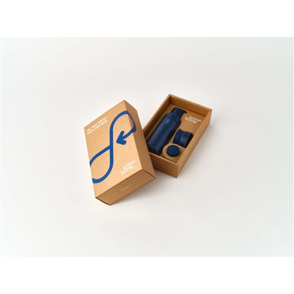 Az 500 ml-es Ocean Bottle szett egy egyedülálló moduláris fedélrendszerrel rendelkezik, amely 3 cserélhető fedéllel biztosítja a zökkenőmentes átmenetet az egyik tevékenységről a másikra. Ez az ajándékkészlet egy 500 ml-es Ocean Bottle palackból és 3 fedélből áll: az eredeti fedél (a mindennapi szivárgásmentes kortyoláshoz), a GO fedél (zárható szalmás fedéllel) és a brew fedél (forró italok élvezéséhez útközben). Kettős nyitási funkcióval ellátott moduláris palack, amely megkönnyíti a töltést, tisztítást és jég hozzáadását. Újrahasznosított anyagokból készült és mosogatógépben mosható. Felelősségteljesen beszerzett újrahasznosított karton ajándékdobozban kerül forgalomba.